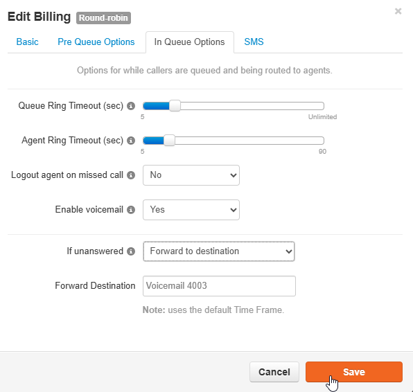 Queue Ring Timeout – Total time the queue will ring.