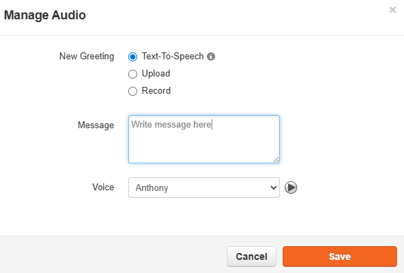 NOTE: If you would like to use a third party service to help create auto attendant messages you can visit the Recordings Studio