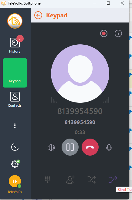 | Step ONE: Initialize Transfer Select one of the two arrows on the bottom right of the phone app. Here you can select Blind or Attended Transfer | ![]() |