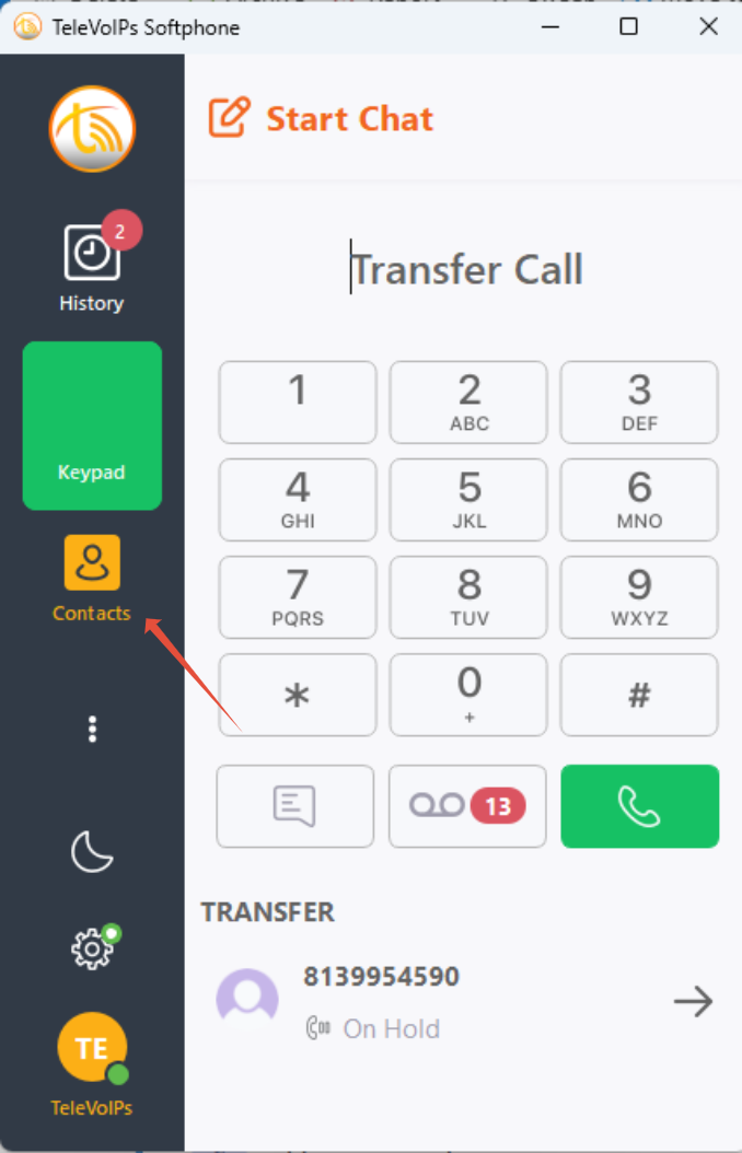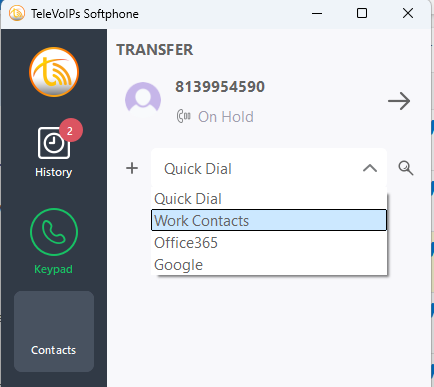 | Step TWO: Navigate to your Contacts With the caller on Hold, navigate to the 'Contacts' on the left hand side. From there, select the drop down and the applicable contact list. Once in the contacts, select your agent and hit the phone emoticon (circled in red below). If blind transfer, the caller will be moved to the select agent. If attended transfer, you will begin calling the agent to then complete the transfer as normal. | ![]() ![]() |